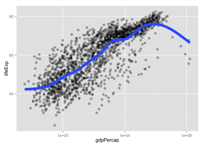 aes(x = gdpPercap, y = lifeExp)) # just initializes